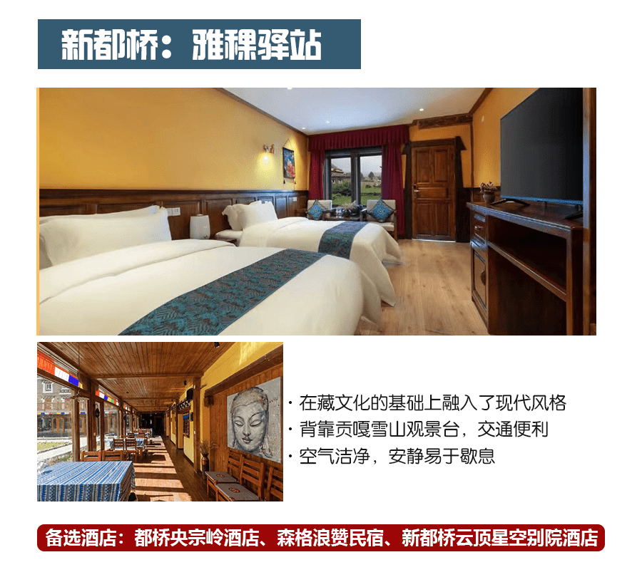 當日住宿:新都橋雅稞驛站、新都橋央宗嶺飯店、森格浪贊民宿、新都橋雲頂星空別院飯店或同級